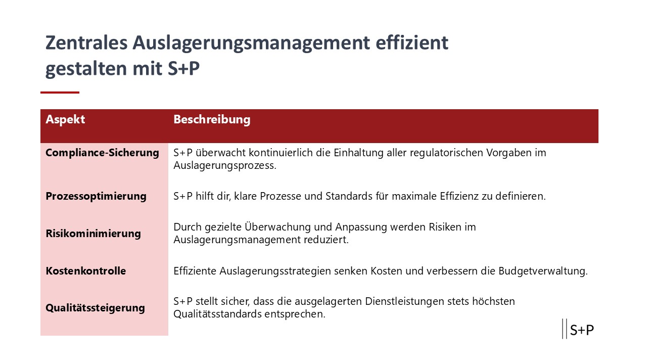 Zentrales Auslagerungsmanagement effizient gestalten mit S+P: Ein Erfolgsfaktor für dein Unternehmen In einer zunehmend komplexen und globalisierten Geschäftswelt wird das Auslagerungsmanagement für viele Unternehmen immer wichtiger. Das Zentrale Auslagerungsmanagement (ZAM) spielt dabei eine entscheidende Rolle, um die Kontrolle über...